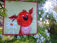 А у меня сегодня какой праздник, живу себе , ничего не жду, дочка приехала, садом любуемся, по вечерам костер, соловьи, вчера дочь провожаю на автобус ,в почтовый ящик заглянула, а там извещение на посылку, может давно лежит, ведь не смотрела даже, огород, козы, сад,да и не ждала , помчалась сегодня и такое чудо получила, всех обошла , музей ,библиотека, магазины, обзавидовались, весь день хожу , вернее порхаю  от счастья, улыбка до ушей, обед праздничный закатила по такому поводу, выпили и мужу  подарок очень понравился! Верочка! Чудо ты расчудесное, спасибо тебе, подарки всегда приятно получать, но неожиданные, во много много раз больше греют душу, кот  замечательный, изнанка красивая и уголки сделаны, сначала я его повесила в спальне, но мы туда  так редко днем заглядываем,  перевесила на кухню, тут весь день будет радовать, а какие лоскуты!!!!!!Не налюбуюсь :reverans: :give_rose: :yahoo:сь!!!!!,,Верунчик!Люблю тебя!