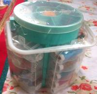 А приз стоит того! Шикарная панель (ну вот люблю я их!),пасхальный магнитик,целое "ведро" мелочей -нитки,иголки,кнопочки и т. п. и замечательная открытка с чудесными пожеланиями! Очень щедрый подарок!