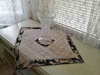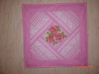 Правда немножко помучилась, накроила шаблоны из ткани сложенной пополам, нашила кружево и оказалось, что пошилось 2 на лицо и два на изнанку. Исправилась,а кружева хватит еще не на одну салфетку. Размер у меня 40х40, на маленький столик. Спасибо!!!!!