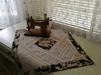 В принципе, на этом можно остановиться.  Но мне показалось, что моя скатерть смотрится незаконченной. Поэтому я сделала бордюр из ткани центрального квадрата.
