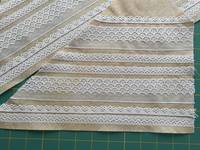 Лена, спасибо! Просто решила попробовать,для салфетки взяла тик на подушки, мне тут подарили 2 метра, еще с 40-50 годов, обе стороны одинаковые . вырезала .разложила, все сошлось, пометила лицо и пришила кружево по первой полоске и оказалось, что на 2-х заготовках пришилось но на изнанку. Я поняла свою ошибку, я выкраивала по 2 заготовки, но для экономии ткани вторую пару положила в зеркальном отражении. Думала так просто, а вот помучалась, зато теперь сделаю правильно.