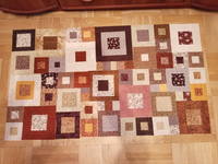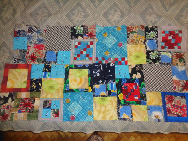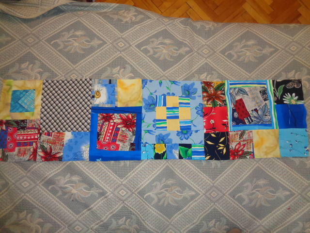 Закончила квадратики для второй полоски, пока не сшивала... Но наверно, буду все же сшивать, так как перекладывать можно до бесконечности, а желаемой  гармонии достичь все равно не удается... Квадратики шьются из абсолютных тазиков, надеюсь, что никакая новая ткань не пострадает, пусть будет то, что будет :D