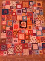 Кое-как дорезала с помощью соседки недостающие квадраты. Соседка и раскладывала под моим руководством. Сфотографировали, отчитались. Потом спокойно приняла горизонтальное положение. Сегодня уже лучше. Сняла всю раскладку квадратиков, разложила по кучкам...