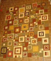 Девочки, спасибо большое. Только геройского тут ничего нет. Я когда эти альбомы с образцами получила, сразу по цветам в коробки рассортировала. А сейчас шью, даже не заморачиваясь с цветом, просто чередую цвета и рисунки, благо их тут миллион. И крою ничего не экономля, чирик-чирик. Все очень быстро. Батик сильно помогает, стабилизирует конструкцию. Но все равно шов больше 10 см я  перед сшиванием иголками фиксирую, чтоб не ёрзали квадраты. Результат мне тоже нравится. Спасибо. Пойдет в гостевую комнату (предыдущее покрывало оттуда я подарила, не нравилось оно мне там), там коты крайне редко бывают, а то я бы тоже не шила для себя из шторок.