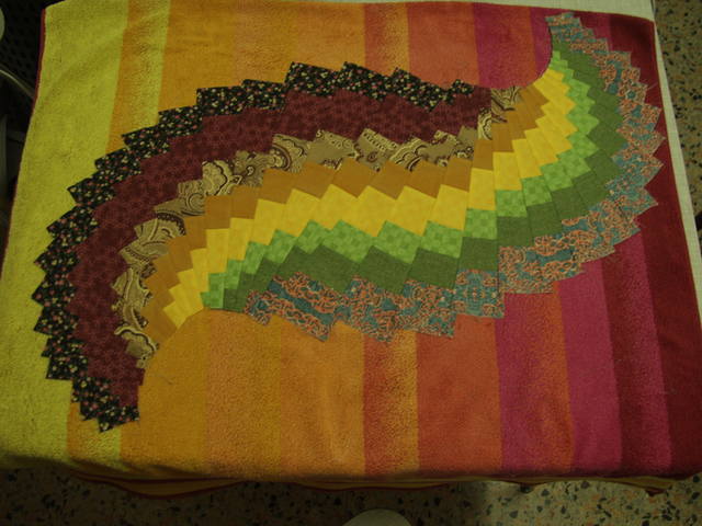 milana, Наташа и девочки. Сшила и второй экземпляр салфетки. Главное отличие - сшивала клинья не с припуском в четверть дюйма, а обычной лапкой и с припуском 9 мм. Итог - салфетка короче где-то на 15 см, как раз у подруги такой журнальный столик. и еще для контрастности поменяла расположение полос. Ей это больше нравится.