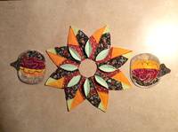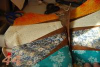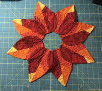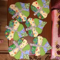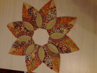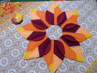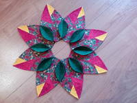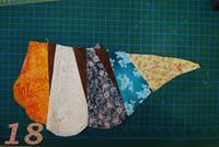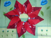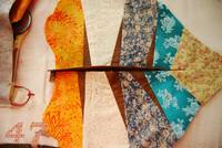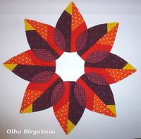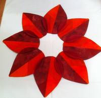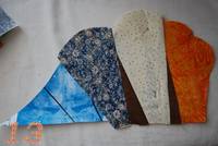 1. Один из листиков  разрезать на 4 детали, с помощью полученных шаблонов выкроить по 8 деталей из ткани каждого цвета. При раскрое НЕ СКЛАДЫВАЙТЕ  ткань вдвое, все детали имеют одно направление и не должны быть зеркально отображены! Так же рекомендую соблюдать направление долевой нити. Припуски 0,7-1 см