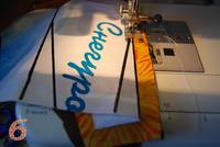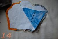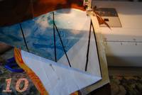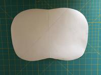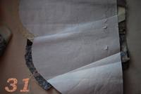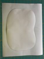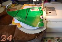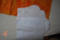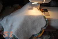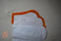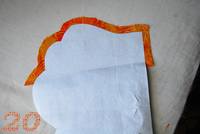 5. Сверху наложить шаблон, приколоть его к сэндвичу и проложить строчку вдоль края бумаги, оставить отверстие для выворачивания длиной  4 см