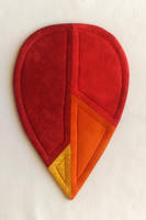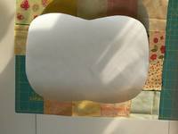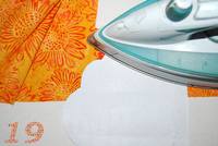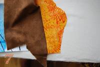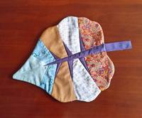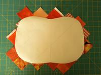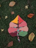 4. Сложить сэндвич: наполнитель,  обратная сторона листика лицом вверх, лоскутная заготовка листика лицом вниз.