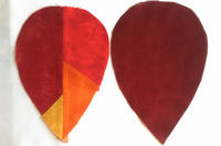 2.  Соединить верхние части с нижними, получим половинки листика. Припуски заутюжить на меньшие детали.