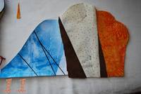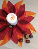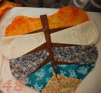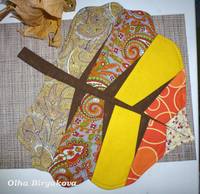Понадобится : кусочки тканей из тазика для верхней части листиков, 50х50 см ткани для изнанки, 50х50 см наполнителя : слимтекса или пропаренного синтепона (синтепон плотностью 150-200 г/м накрыть тканью и пройтись утюгом с паром), нитки в цвет ткани.