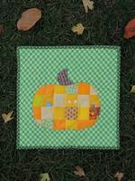 Режем ткань на квадратики. В оранжевой тыкве у меня квадратик 2,5", в жёлтой 3".