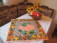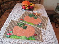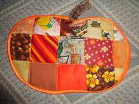 Берём лист бумаги размером с ланчмат и рисуем на листе тыкву... Ну, или очень на неё похожее. Делаем выкройку тыквы отдельно