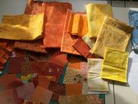 Роемся в своих закромах и находим ткани в оранжево-жёлтой гамме.  :good2: :good2: :good2: Я отсортировала оранжевые и жёлтые.