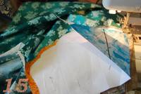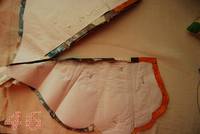 6. Наполнитель обрезать близко к строчке, припуски срезать ножницами зигзаг или обычными до ширины 3 мм. Припуски на уголке высечь близко к строчке.