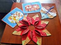 А я тут в пинтересте еще интересные салфетки нашла - попробовала одну в уменьшенном виде сделать из тканей тоже пробных :)
