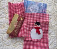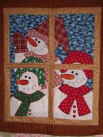 В обмен снеговиками идут лоскутные заготовки размером не менее 6"Х8". Это могут быть снеговички сшитые по бумаге или аппликация