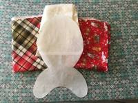 Приложите выкройку носочка к каждой ткани,  обведите и вырежьте детали.