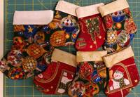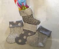 Ещё накроено на три носочка... Может и успею сегодня их сшить!!!! Нравится!!!! Они такие хорошенькие получаются!!! Я сделала выкройку в два раза меньше. Хочу гирлянду из носочков!!!!