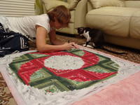 У меня тоже уже верх собран,осталось собрать топ и простегать .Но это же не считается законченной работой.Надо показывать окантованную работу?!