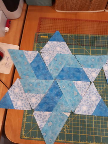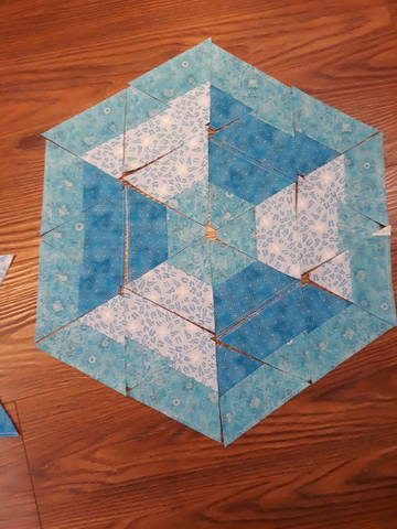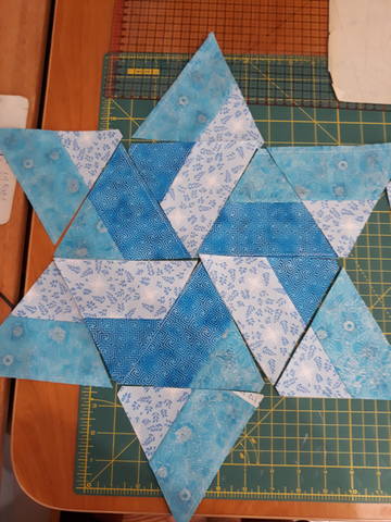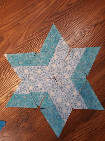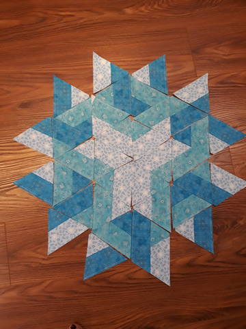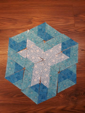 Картонка, Катюша, а я - шью-шью, продолжаю. Замечательные салфетки получились в подарки к Новогодним праздникам( вплоть до Крещения)))) И еще не все друзья-подруги оподарены, да и от имеющегося метра флизелина ничего не осталось... Жду от Лены Барри заказанный... Как получу,то  немного еще поупражняюсь с треугольный растром  :good2:  Всем подругам очень понравились.  :reverans: Правда, дизайн мой доморощенный, мне больше нравится, когда шестигранники получаются, а не звезда, поэтому дополняла треугольниками.