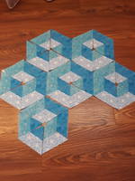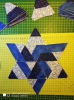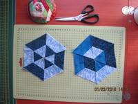 Звезду сложила с большим трудом, видимо потому, что никогда раньше звезд не шила. А вот гексагоны - сколько угодно.