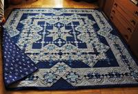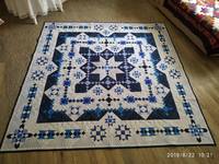 Девочки- спасибо большое за похвалу и отзывы,всегда приятна поддержка ,расскажу немного о своем шитье,сами знаете,что блоки я сшила быстро и даже приступила к стежке почти сразу,но потом как то другие дела все время меня отвлекали и сознание того,что время еще есть ,меня расхолаживало,да и в стежке я не большой спец и четкого плана как сделать в голове никак не складывалось,а просто так,лишь бы...,мне не хотелось,потому как задумка сделать памятные квилты для своих внучек постоянно крутится в голове,внучек у меня 3 и старшей нынче 18 исполняется уже очень скоро- вот ей он и предполагается для подарка. Мысль сделать красивые  памятные  квилты появилась еще до СП и как только я увидела предложенные Ганнусей варианты  квилтов,то все время думала ,чтоб выбор выпал именно на этот  квилт,потому как он мне очень понравился и потом ,я много раз искала в Пинтересте еще что нибудь для сравнения,но этот наш "синий" всегда оставался в моих фаворитах и еще - есть мысль повторить в сиреневом цвете-но когда я буду определенно готова .не знаю пока.Пока я очень рада,что все получилось как я хотела,все сложилось и он мне безумно нравится .Девочки,те кто еще не дошил- дошивайте.до конца совместника осталось немного и уверяю вас .он вам тоже будет нравиться,ведь он такой красавчик