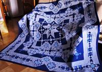 Изюминка этого квилта в том, что сине-белый квилт  сшит без белой ткани!