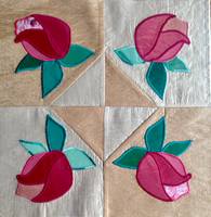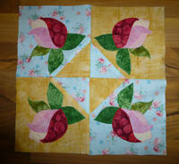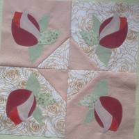 15 числа каждого месяца будет выставляться один блок в трех вариантах: просто лоскутной сборки из тканей в розочку, Лоскутный блок с аппликацией (30 см, с припусками 31,5 см) и блок размером 15*15 см только с аппликацией, без сбороного фона. Шьем один из вариантов, т.е. сразу решите, будете ли шить квилт из 30-сантиметровых блоков или панно из 15-сантиметровых, перемешивать их не будем потом (разве что кто-нибудь что-нибудь свое придумать).