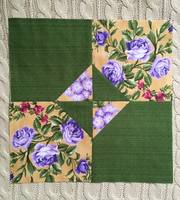 Раскрой: цвет 1  - 4 квадрата по 10 см; цвет 2 - 4 квадрата по 10 см, фоновая 8 квадратов по 10 см. Каждый цвет + фон - изготавливаем HST (результат должен получиться 9 см размером), сшиваем по схеме (обращаем внимание на расположение цветов) Удачи - это последний блок!