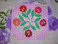 Вот не хотела бы вроде сюда ввязываться, а как-то получилось само собой. Захотелось аппликации. Сшила за три дня 9 блоков. Поскольку ссылки уже не работают, кроила блоки по Катиному описанию с 1стр. , а аппликации рисовала сама примерно, глядя на ваши отшивы. Примите меня в компанию. :) Весной-то я сшила 2 блока (они внизу), но мне не понравилось, поэтому они пойдут на подушки.