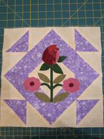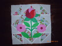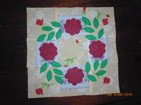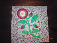 Я тоже сделала седьмой блок, правда с аппликацией. Но интернет не передает настоящий цвет листочков. Они темно-зеленые.