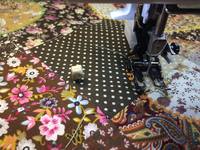 Тканей у меня было всего 16 видов, поэтому каждый квадратик в двух экземплярах. Эти лоскутки я купила на Али, ткани очень тонкие, пришлось продублировать тонким флизелином оба полотна, не пожалела. Приспособления у меня нет, поэтому воспользовалась советом "голь на выдумки мудра". Приклеила малярным скотчем копку, а на нее уже накалывала ткань. Строчила с верхним транспортером и прямую строчку, и декоративную, очень понравилось.