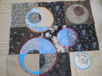 Tampa,Людмила, вот моя вторая заготовка на подушку. Снова шила просто вручную, нижнии квадраты на флизелине, там и рисовала круги.Фотик разряжается поэтому не очень резко, но цвета реальные, сделала и кусочек макро. Спасибо за науку очень понравилось шить круги, даже вручную.