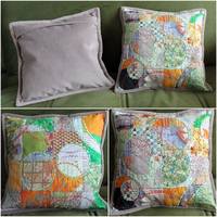 Мила, принимай еще одну мою подушку! При пошиве этой выбирала декоративные строчки  тщательнее, ни один шов не стянулся. Но несколько декоративных швов решила распороть, не понравился цвет ниток. При распарывании немного разрезала ткань, пришлось на этом месте сделать декоративную фигoвинку, вроде бы как украшение. На 3-ем фото видно. Но это видно только когда подушку к носу поднесешь, а издалека ничего не видно.  :)