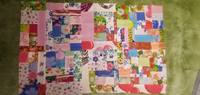 На два слоя блоков мне было жалко  лаптиков, и решила другую сшить из лоскутного "мусора" маленькие остатки сшивала в хаотичном порядке (как правило, очень давно), лежал этот кусок ожидая, не зная чего.решила пустить в дело и вот что вырисовывается, осталось еще круги доделать