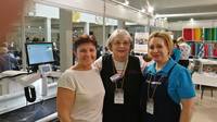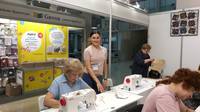 У меня фотографий не много, но похвастаюсь и я... Я тоже была бабочкой!!!!  :yahoo: :yahoo: :yahoo: Я живьём увидела Олю Volha, а ещё Олю Лёлишну и Лариса, ,  :give_heart: :give_heart: :give_heart: Сфотографировалась С Kumiko Frydl около её потрясающих миниатюр!!! Пошаталась около МК "Стёганного цветочка", пока там занимались на наши OlNik и Zveta И ещё мне очень повезло застать мастера из HQ и получить массу советов по стёжке на лонгарме с помощью компьютера.
