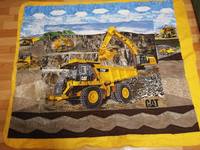 У меня была замечательная панелька и еще несколько тканек по этой же тематике. Хотелось сделать более живую картинку, чем на панеле. Схему помогла сделать подруга. На бэк пошел наш флисовый пледик, который дарили заказчикам компании как сувенир. Так он был не очень хорошего качества, я его проложила Сиберией 50-кой (спасибо Лене!).
