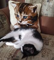 Покажу сразу несколько своих подушек. Доделала 2 вышитые мамой подушки. Задние одной из них сделала тесселяцию. И подушка с котами, которую сделала в качестве дипломной работы на курсе " Игра в цвет"