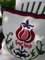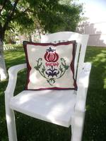 Между посадками и прополками в саду-огороде сшила подушку  с дизайном от Уильяма Морриса. И хоть ткани не "моррисовские", но результат мне очень нравится, размер 45*45см. К сожалению, фото при переносе с телефона на ПК теряют четкость. :-\