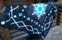 А у меня "Ночная снежинка" в жарком июле :D Квилт был начат зимой, задумывался изначально салфеткой со снежинкой, потом дорос до скатерти, а потом (гулять, так гулять!))  дошился до полноценного квилта. И стало понятно, что мне его совершенно некуда применить. Но дочка с радостью утащила к себе, так что наконец-то снежинка нашла пристанище :D Простегала Наташа Светилова, как всегда, здорово, правда, обозвав мою снежинку упитанной ;D