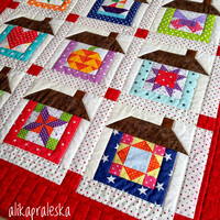 Назвала "Уютная деревенька". По МК Ларисы Черновской, был СП осенью. Блоки сшила еще в октябре, вот ждали своего часа четыре месяца, чтобы собраться и простегаться  :)