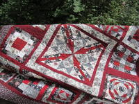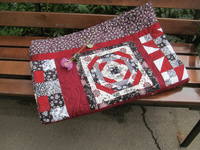 Квилт черно-белый с добавление цвета спелой вишни.... всё из учебных блоковв. кроме бэка :-)))))