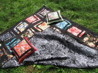 TATYANA,  Сшила сначала все, окантовала, потом трепала ческой для вычесывания кошек и собак. Специально купила для этого. Снизу фланелька в клеточку. Не особенно тяжелый.  Второй ? не решила еще какой.  Надо еще джинсиков добавить, по родственникам поспрашивать.