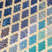 Не знаю насколько это покрывало, но и для настенного панно размер великоват. Поэтому пусть будет покрывалом для карлика. Короче, дошила я свой второй квилт из задуманной трилогии "Три цвета". На этот раз синий. Третий уже в процессе. Гексагончики - 1 см, ручная сбока на бумажном шаблоне, машинная стежка на СХ в шов..
