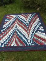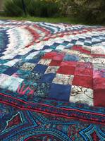 Получилось одеяло, размер 242х220 см, внутри сиберия 150. Понравилась она, мягонькая. На стежку  совсем не было времени, поэтому прошагала враскол. Одариваемые остались довольны, не зря ждали три года  ;D