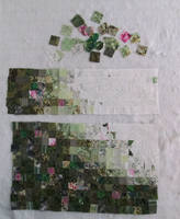 VESNARED[/  Ну как и з чего ? Из тканей.. Набрала зеленую растяжку тканей, порезала на квадратики 2х2 инч, а потом выкладывала углы от самого темного до светлого  тона. середину  выкладывала   белым цветом