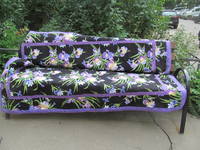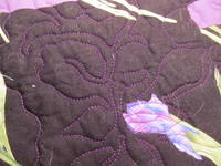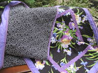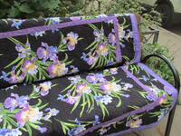 Ткань настолько красива, что резат её на кусочки рука не поднялась,   Красота ирисов меня просто покорила.   А Наташа  добавила ирисы еще и в своей стежке...