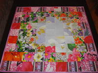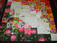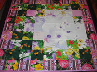 все это сшито было давно,еще по самому началу занятия этим пэчворком,из отечественных тканей и можно такую историю замутить в "12 шагаз познания" -мне кажется у всех наберется в доме необходимое количество всяких остатков тазиковых