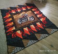 Мы с тобой практически в унисон. :D У меня сшился тоже в подарок брату-байкеру байкерский плед. В отличие от Алисиного благородного у меня какой-то сумасшедше-огненный :D