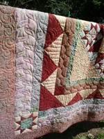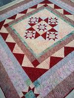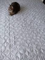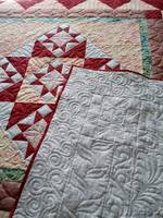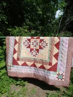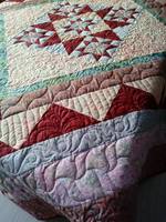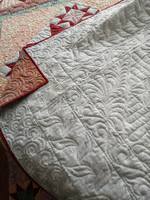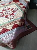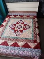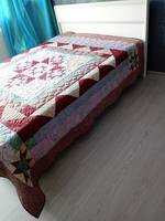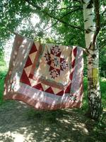 Размер 225*225 см топ-батик,бэк сатин твил,наполнитель фоллофайбер софт,стегала на свободном ходу,шила чуть больше месяца,по выходным и вечерам т.к. днем работаю. Построение и расчет деталей делала сама, но идея не моя, шила его по картинке в интернете, поисковик выдал - дизайнер Carol Hopkins